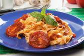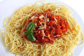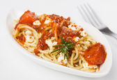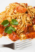 makaron spaghetti z sosem z sera i pomidora