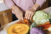 Zdjęcie "kobieta przygotowuje jedzenie w kuchni." może być wykorzystywane do celów osobistych i komercyjnych zgodnie z warunkami zakupionej licencji Royalty-free. Obraz jest dostępny do pobrania w jakości wysokiej rozdzielczości do 5760x3840.