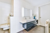 Zdjęcie "Wanna i umywalka oddzielone szklaną ścianą" może być wykorzystywane do celów osobistych i komercyjnych zgodnie z warunkami zakupionej licencji Royalty-free. Obraz jest dostępny do pobrania w jakości wysokiej rozdzielczości do 5760x3840.