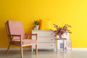 Zdjęcie "Wnętrze salonu z wygodną sofą, półką i kwiatowym wystrojem" może być wykorzystywane do celów osobistych i komercyjnych zgodnie z warunkami zakupionej licencji Royalty-free. Obraz jest dostępny do pobrania w jakości wysokiej rozdzielczości do 5760x3840.