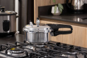 Praktyczny piec ciśnieniowy srebrny w nowoczesnej kuchni