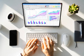 Zdjęcie "Analityk danych korzystający z pulpitu nawigacyjnego KPI" może być wykorzystywane do celów osobistych i komercyjnych zgodnie z warunkami zakupionej licencji Royalty-free. Obraz jest dostępny do pobrania w jakości wysokiej rozdzielczości do 5760x3840.
