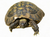 Herman's żółw na białym tle na białym tle testudo hermanni