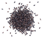 Czarne sezamowe tło. Przyprawa organiczna. Widok z góry.