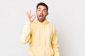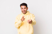 Zdjęcie "young handsome hicpanic man smiling, feeling carefree, relaxed and happy, dancing and listening to music, having fun at a party" może być wykorzystywane do celów osobistych i komercyjnych zgodnie z warunkami zakupionej licencji Royalty-free. Obraz jest dostępny do pobrania w jakości wysokiej rozdzielczości do 5760x3840.