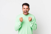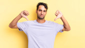 Zdjęcie "young handsome hicpanic man feeling happy, surprised and proud, pointing to self with an excited, amazed look" może być wykorzystywane do celów osobistych i komercyjnych zgodnie z warunkami zakupionej licencji Royalty-free. Obraz jest dostępny do pobrania w jakości wysokiej rozdzielczości do 5760x3840.
