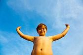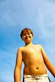 uśmiech szczęśliwy młody chłopak z brązowe włosy i oczy na plaży