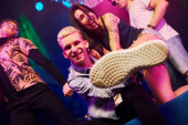 Zdjęcie "Młodzi ludzie bawią się w nocnym klubie z kolorowymi światłami laserowymi." może być wykorzystywane do celów osobistych i komercyjnych zgodnie z warunkami zakupionej licencji Royalty-free. Obraz jest dostępny do pobrania w jakości wysokiej rozdzielczości do 5760x3840.