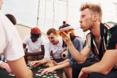 Zdjęcie "Facet bierze pigułki. Młodzi ludzie bawią się w nocnym klubie z kolorowymi światłami laserowymi." może być wykorzystywane do celów osobistych i komercyjnych zgodnie z warunkami zakupionej licencji Royalty-free. Obraz jest dostępny do pobrania w jakości wysokiej rozdzielczości do 5760x3840.