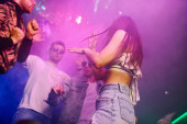 Zdjęcie "Piękna młoda dziewczyna baw się dobrze, tańcząc w nocnym klubie. Piłka imprezowa." może być wykorzystywane do celów osobistych i komercyjnych zgodnie z warunkami zakupionej licencji Royalty-free. Obraz jest dostępny do pobrania w jakości wysokiej rozdzielczości do 5760x3840.