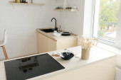 Nowoczesny piekarnik elektryczny z gałkami w kuchni, zbliżenie