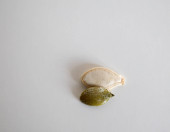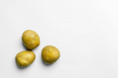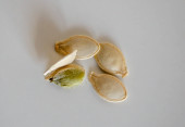 pęknięte zielone i słone pistacje w pobliżu rozmazanych orzechów na białym tle