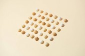 widok z góry pękniętych i organicznych orzechów pistacjowych na białym