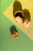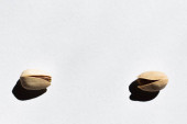 widok z góry pęknięte i zdrowe orzechy pistacjowe na białym