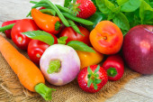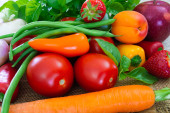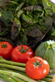 sałatka, pomidor, marchewka, ziemniak, szparagi na stole