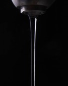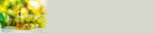 koncepcje pielęgnacji skóry - szklana butelka z olejkiem kosmetycznym lub serum, naturalne twarde światło, głębokie cienie, przestrzeń do kopiowania