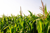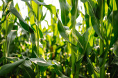 Zdjęcie "Słońce świeci nad zielonym polem kukurydzy rośnie. Koncepcja rolnictwa, ogrodnictwa ekologicznego, sadzenia lub ekologii." może być wykorzystywane do celów osobistych i komercyjnych zgodnie z warunkami zakupionej licencji Royalty-free. Obraz jest dostępny do pobrania w jakości wysokiej rozdzielczości do 5760x3840.