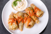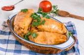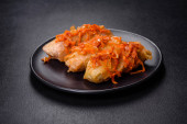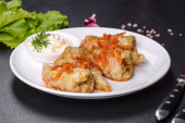 Tradycyjna nadziewana kapusta z mielonym mięsem i ryżem, podawana w sosie pomidorowym