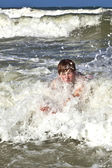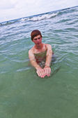 młody człowiek jest kąpiel w Oceanie
