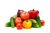 pomidory, ogórki, kukurydza, papryka słodka na biały deseń