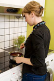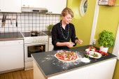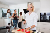 Kobieta krojąca warzywa