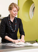 młoda kobieta co ciasto do pizzy