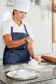 młoda kobieta Dokonywanie pizza