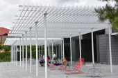 NEW CANAAN CT - KWIECIEŃ 23: The Sanctuary Auditorum at Grace Farms w New Canaan, Connecticut, jak widać 23 kwietnia 2022 roku. Farma wspiera inicjatywy w dziedzinie przyrody, sztuki, sprawiedliwości, wspólnoty i wiary.