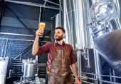 Zdjęcie "Mistrz browaru z browarem, degustacja piwa w zakładzie produkcyjnym. Mała firma rodzinna, produkcja piwa rzemieślniczego." może być wykorzystywane do celów osobistych i komercyjnych zgodnie z warunkami zakupionej licencji Royalty-free. Obraz jest dostępny do pobrania w jakości wysokiej rozdzielczości do 5760x3840.