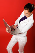 Zdjęcie "kobieta z komputera na czerwono" może być wykorzystywane do celów osobistych i komercyjnych zgodnie z warunkami zakupionej licencji Royalty-free. Obraz jest dostępny do pobrania w jakości wysokiej rozdzielczości do 5760x3840.