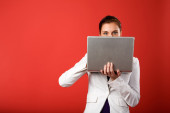 Zdjęcie "kobieta z komputera na czerwono" może być wykorzystywane do celów osobistych i komercyjnych zgodnie z warunkami zakupionej licencji Royalty-free. Obraz jest dostępny do pobrania w jakości wysokiej rozdzielczości do 5760x3840.