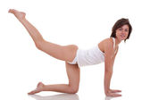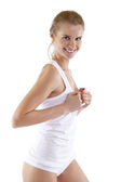 kobieta piękna, szczupła budowa ciała w białej koszuli