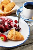 Zdjęcie "Śniadanie z herbatą, dżemem i rogalikami" może być wykorzystywane do celów osobistych i komercyjnych zgodnie z warunkami zakupionej licencji Royalty-free. Obraz jest dostępny do pobrania w jakości wysokiej rozdzielczości do 5760x3840.