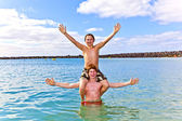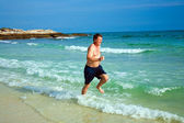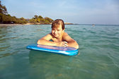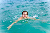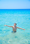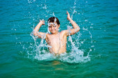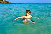 chłopiec przeżywa jasne ciepłej wody przy pięknej plaży, ale