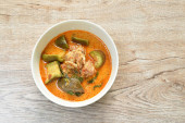 Zdjęcie " wieprzowina curry z bakłażanem w mleku kokosowym lub Panang tajskie jedzenie na talerzu" może być wykorzystywane do celów osobistych i komercyjnych zgodnie z warunkami zakupionej licencji Royalty-free. Obraz jest dostępny do pobrania w jakości wysokiej rozdzielczości do 5760x3840.