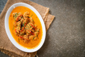 wieprzowina curry z bakłażanem w mleku kokosowym lub Panang tajskie jedzenie na talerzu