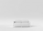 Czarna, dwumiejscowa sofa na czarnym tle. Widok z przodu nowoczesnych, luksusowych, komfortowych, błyszczących skórzanych mebli tkaninowych z podłokietnikiem. Salon lub wystrój biura. Sztandar. 3d renderowanie