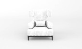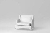 Biały fotel kreskówki izolowane na brązowym tle. Klasyczny, wygoda, pop art puste miękkie meble siedzące. Minimalna koncepcja. Zamknij z przodu, sztandar. 3d renderowanie