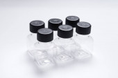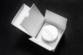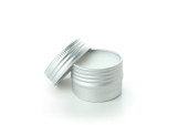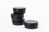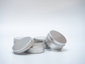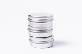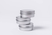 Zestaw srebrnych metalowych pudełek, skrzynek. na białym tle