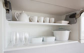 Jasna kuchnia z białymi ścianami w mieszkaniu