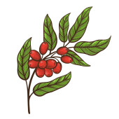 Ręcznie rysowane malarstwo akwarelowe na białym tle.Akwarelowe ilustracje gałęzi kawy z liśćmi i fasolą.