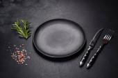Zdjęcie "Puste czarne talerze, widelec i nóż na czarnym tle. Widok z góry, przestrzeń kopiowania" może być wykorzystywane do celów osobistych i komercyjnych zgodnie z warunkami zakupionej licencji Royalty-free. Obraz jest dostępny do pobrania w jakości wysokiej rozdzielczości do 5760x3840.