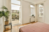 Zdjęcie "Wejście do przestronnej sypialni z dużym łóżkiem" może być wykorzystywane do celów osobistych i komercyjnych zgodnie z warunkami zakupionej licencji Royalty-free. Obraz jest dostępny do pobrania w jakości wysokiej rozdzielczości do 5760x3840.