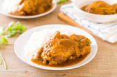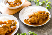 Zdjęcie "Afgański kurczak w zielonym curry lub Hariyali tikka kurczaka hara masala z ryżem - azjatycki styl żywności" może być wykorzystywane do celów osobistych i komercyjnych zgodnie z warunkami zakupionej licencji Royalty-free. Obraz jest dostępny do pobrania w jakości wysokiej rozdzielczości do 5760x3840.