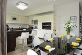Zdjęcie "Wnętrza kuchnia-jadalnia w jasnych kolorach" może być wykorzystywane do celów osobistych i komercyjnych zgodnie z warunkami zakupionej licencji Royalty-free. Obraz jest dostępny do pobrania w jakości wysokiej rozdzielczości do 5760x3840.