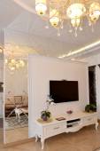 Zdjęcie "Widok z salonu i kuchni podzielone przez interroom m" może być wykorzystywane do celów osobistych i komercyjnych zgodnie z warunkami zakupionej licencji Royalty-free. Obraz jest dostępny do pobrania w jakości wysokiej rozdzielczości do 5760x3840.