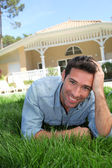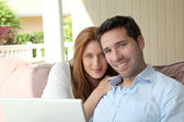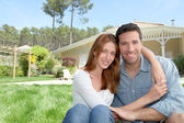 Zdjęcie "Młoda para siedzi przed ich nowy dom" może być wykorzystywane do celów osobistych i komercyjnych zgodnie z warunkami zakupionej licencji Royalty-free. Obraz jest dostępny do pobrania w jakości wysokiej rozdzielczości do 5760x3840.