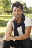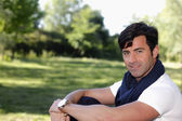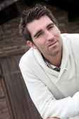 portret przystojny mężczyzna stojący w mieście