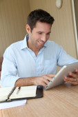 Zdjęcie "atrakcyjny mężczyzna z touchpad na niebieskim tle" może być wykorzystywane do celów osobistych i komercyjnych zgodnie z warunkami zakupionej licencji Royalty-free. Obraz jest dostępny do pobrania w jakości wysokiej rozdzielczości do 5760x3840.