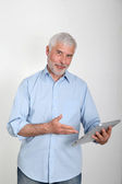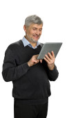 Zdjęcie "starszy człowiek za pomocą elektronicznego tabletki" może być wykorzystywane do celów osobistych i komercyjnych zgodnie z warunkami zakupionej licencji Royalty-free. Obraz jest dostępny do pobrania w jakości wysokiej rozdzielczości do 5760x3840.